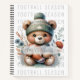 Personalized recipe notebook features a football theme with a feminine touch. Modern design has a cute bear holding a football and flowers. Perfect for football fans. A great way to organize football recipe and snack ideas. Personalize the text on the front and back. Add your desired name. Soft green, blue, gray, and orange colors. Use the template to create your own recipe notebook.