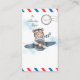 Personalize these cute baby shower postcard style diaper raffle enclosure cards with your details easily and quickly. Simply click the Edit Using Design Tools button to further edit the text, wording, font style, font size, font color and add more or remove text. Featuring a cute bear riding a dusty blue plane with an "it's a boy" postmark. Matching items available in store! (c) The Happy Cat Studio