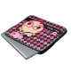 Cute bear with glasses on black and pink argyle laptop sleeve