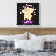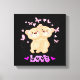 Adorable Valentine Canvas Print featuring a cute Teddy bear couple hugging each other, pink little hearts and butterflies, and the word "Love" on black background. You may change the background color as you wish.