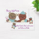 Adorable kawaii style bears with knitting needles and ball of yarn on this business card or large 'handmade with love' gift tags, product tags or hang tags for knitting or yarn crafts. Bears wear a scarf and hat, one holds a pair of purple knitting needles and the other a ball of fluffy blue yarn.