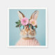 cute beautiful bunny in a hat in a basket with flowers for Easter