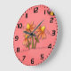 Cute Bee and Flower Pink Spring Garden Large Clock