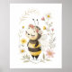 Cute Bee and Flowers Poster