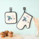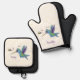 Cute bee hummingbird cartoon illustration oven mitt & pot holder set