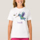This cute design features a green and purple happy hummingbird with a bee friend. All done in happy cartoon illustration style!