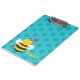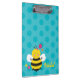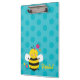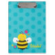 Personalized clipboard featuring a cute bee with a beautiful aqua polka dots background. Cute and fun design for special for girls. Custom monogrammed gift.