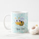 Cute Bee; Teal Damask Pattern Coffee Mug