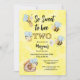 Cute Bee Two Yellow Black Second Birthday Party Invitation