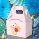 Happy Valentine's Day favor boxes with an image of a pink and white striped bumble bee. A piece of yellow honeycomb behind. A letter sealed with a heart and a group of floating hearts are also part of the design.