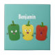 Cute bell pepper capsicum trio singing cartoon ceramic tile