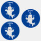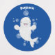 This happy beluga whale is blowing bubbles! Drawn in cute cartoon illustration style on a blue background.