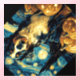 Cute Bernese mountain Dog Halloween Jack O Lantern Pumpkin Face Starry Night Van Gogh Style