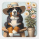 Cute Bernese Mountain Dog with Hat and Flowers Square Sticker