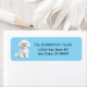 The left side of these return address labels feature a portrait of an adorable little white Bichon Frise dog. Your custom text is in black and blue at the right, and everything is placed on a lighter blue background. You may change the color of the background and text, if you'd like, by choosing to Customize.