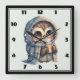Cute Big-Eyed Owl Holding a Coffee Square Wall Clock
