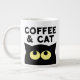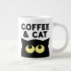 Cute big fat black cat coffee mug for cat owner. Giant Coffee cup for home, cat cafe or office. Fun Birthday gift idea for animal lover, new pet owner, cat lover, friend, co worker, cat mom, crazy cat lady etc. Personalize with your own name or cool quote optionally. Black kitty with big yellow eyes. Jumbo size mugs.