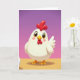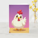 This card features a round, pearly white bird centered in the foreground, its smooth surface catching soft light that makes it feel gently cuddly. A glossy scarlet comb and matching wattles sit on its head like a bright accent, while big shining eyes and a small golden beak give it a sweet, friendly look. Faint rosy cheek marks add to the tender expression, as if it’s gazing at someone it trusts. The bird stands on sturdy golden-orange feet on a sandy, sunlit strip of ground, suggesting a calm little meeting spot where friendship can grow. Above that, the background fades into a light lavender-to-purple gradient, keeping the scene simple and airy, with a soft shadow beneath the bird for depth. A short Easter greeting appears near the top in a warm, contrasting color, with smaller text tucked beneath it in a darker shade for easy reading, and a small 🌷 nearby for a gentle seasonal touch. The wing curve and tiny highlights on the red and gold details are carefully placed, and a small 🐇 icon sits near the lower edge beside the sandy horizon line.