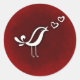 Dress up your favors, gifts, and envelopes with our cute bird singing love Valentine's day round sticker. Valentine's day Stickers are great for sealing gifts, packages and cards. Use the smaller sizes for envelope seals and gift tags the larger size for bigger gifts and gift tags.You can get larger size by clicking "more" button on the right side of this image.Valentine stickers give all your greetings a special touch.
