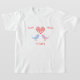 The two little birds in pink and blue on this gorgeous t-shirt have a cloud of red hearts above them. The design conveys feelings of love, happiness and friendship. The text is fully customizable and reads "Tweet", "Hearts", "Friendship" - or you can type in the boxes to personalize this.