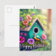 This cute postcard features an illustration of a bird perched on a birdhouse on a beautiful Spring day. Please feel free to adjust all the available options as you wish.