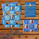 Create your own personalized birthday wrapping paper with this three sheet assortment in shades of blue featuring three of your photos and your child's name and age. Fun for kids and adults from age one to one hundred, the three designs highlight typography, your photos and fun graphic elements in sapphire, lapis and sky blue for cute one of a kind custom birthday gift wrap. The first sheet lets you add two photos that alternate between solid sky blue squares that have room to add the birthday boy's (or girl's) name along with HAPPY BIRTHDAY, both in a fun dark blue font. The second sheet has a background of deep lapis blue and the name of your choice in white nestled within a pattern of decorative dots. The third sheet in this birthday photo wrapping paper is designed for one photo in the checkerboard pattern along with two alternating designs for your child's age in white on sapphire and HAPPY BIRTHDAY and decorative dots in light sky blue. Easy to personalize and super cute for birthdays ranging from 1st to 100th, this unique photo birthday gift wrap in shades of blue will make that special birthday even more memorable.