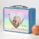 Cute Birthday Name Photo Pastel Rainbow Heart Blue Metal Lunch Box