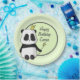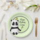 Cute Panda with crown and star wand, black and pastel green buffalo plaid background. Personalize center text circle