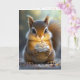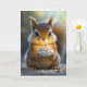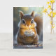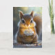 A cute squirrel holds a birthday cupcake topped with swirled frosting and sprinkles gazing intently with bright eyes.