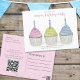 This design features cute birthday watercolor cupcakes, with a QR code for website online party information. a whimsical colorful pastel pink sweet, a birthday candles dessert treat cake, a stylish trendy calligraphy script text, a modern typography style font, an adorable kids child girl birthday, with blue yellow purple teal pink, an adorable kids toddler birthday party, a sweet food birthday baking frosting, for any kids birthday party invitations