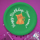These customizable birthday paper plates feature an adorable orange kitten on a bright green background, accented with modern, white, handwritten typography. The design allows you to personalize the text with a birthday wish and a name. Perfect for kids' birthdays, animal lovers, and fans of cute cartoons, these plates add a playful and charming touch to any celebration. You can easily edit the message to suit the occasion, making them a delightful addition to birthday parties and special events. Celebrate in style with these unique, customizable plates that bring warmth and fun to the festivities.
