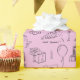 a cute birthday gift wrapper in a baby pink color with small birthday related items.