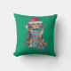 This cute little black and brown mixed breed Christmas puppy is looking very festive wearing his red santa hat with a sprig of holly in it. He's holding his red and green stripy Christmas stocking in his mouth as he eagerly awaits a visit from Santa Claus to fill his stocking with lots of gifts and other doggy goodies. He looks very special on this original seasonal cushion. The cute little puppy design really stands out against the festive pale lemon background of this cool cushion. I think this unique christmas cushion with the cute little water-colour puppy picture makes great Christmas gift for someone special or maybe you just fancy a cute treat for yourself for this Christmas holiday.