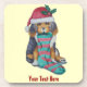 This cute little black and brown mixed breed Christmas puppy on these original christmas coasters is looking very festive wearing his red santa hat with a sprig of holly in it. He's holding his red and green stripy christmas stocking in his mouth as he eagerly awaits a visit from Santa Claus to fill it with lots of gifts and other doggy goodies. He looks very special on these original customizable christmas coasters. This christmas coaster has a customizable text in a bold seasonal red just below this little pup, you can personalize the caoster with your own words. I think they'll make a great gift for someone special or maybe you just fancy a treat for youself for this christmas holiday time The original puppy illustration is painted in watercolour and is an original product of my imagination.