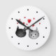 Cute Black and Gray Cats, with Hearts. Round Clock