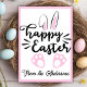 This cute Easter card features pink bunny ears and bunny feet with the words "Happy Easter" in a black decorative script with a place to add your name or special message underneath. The message inside the card reads "Hoping your Easter is extra bright and happy this year." and can be changed or modified as desired. Customize even more by adding your name(s).