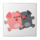 Cute Black and White Cartoon Pigs Tile