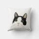 Cute Black and White Cat Throw Pillow. Black and White Cat Digital Illustration Portrait.