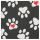 Cute Black and White Dog Paws With Hearts Pattern Fabric