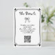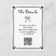 Cute black and white Hand drawn scribble whimsical retro French style wedding verticl enclosure card. This charming, vertically-oriented enclosure card features a hand-drawn black and white scribble design with a whimsical retro French style. The card showcases a playful illustration of a bow aand a frame with hearts at the corners, and includes the word "Details." A QR code is also incorporated, allowing guests to easily access further wedding information.