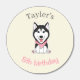 Cute black and white husky dog with pink bandana on cream color background. Just add a name on this is a cute design.