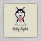 Cute black and white husky dog with pink bandana on cream color background. Just add a name on this is a cute design.
