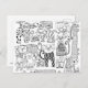A fun cute black and white hand-drawn cats whimsical pattern postcard by Julie Nicholls©.