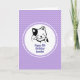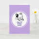 A birthday greeting card with a message inside which you can personalize. Designed with an illustration of a smiling and waving kitty cat with a black spot around his ear. Purple polka dot background. Simple cute and adorable.