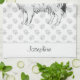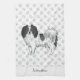 Cute Black And White Phalène Dog With Custom Name Kitchen Towel