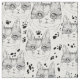 Cute Black and White Serene Cat Face Pattern Fabric