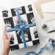 Cute Black Bear Paw Print Checkerboard Pattern Wrapping Paper
