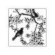 Cute Black Bird Tree Branches Flowers Berries Rubber Stamp