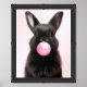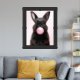 Cute Black Bunny Blowing Pink Bubble Gum Framed Art