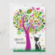 Cute Black Cat and Flower Tree Birthday Invitation
